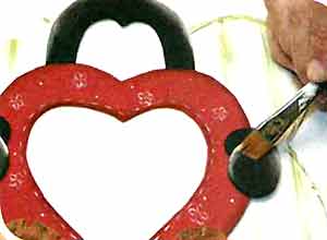 Curso de E.V.A: Porta Retratos - passo 16 16. Use o pincel chanfrado e a tinta marrom para sombrear e fazer os riscos dos sapatos