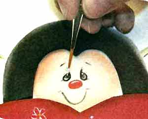 Curso de E.V.A: Porta Retratos - passo 19 19. Desenhe com o pincel liner os olhos e a boca com a tinta preta e o nariz com a tinta vermelha.