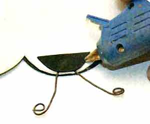 Curso de E.V.A: Porta Retratos - passo 23 23. Para fazer a anteninhas, corte um pedaço do arame, enrole as pontas e prenda com um pedaço de EVA preto, usando a cola quente.