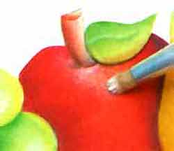 Molhe a brochinha na tinta branca e bata somente a pontinha no centro de todas as frutas para dar o efeito de luz.
