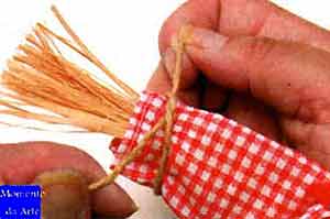 Na extremidade de cada braço e perna, amarre um fio de rami,
