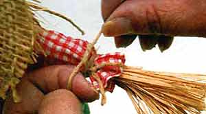 29. Montar o Espantalho:E finalmente, amarre o espantalho nos palitos com fios de rami. Sugestão: Crie alguns bonecos com feições e roupas diferentes. | ||