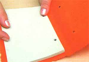 Curso de E.V.A: Agenda - passo 3 3. Faça o furo no bloquinho (ou folhas):