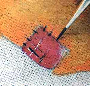 12. Faça riscos brancos e pretos na horizontal e na vertical com o pincel 308-0 para compor o xadrez do remendo.
