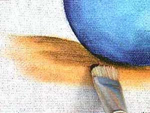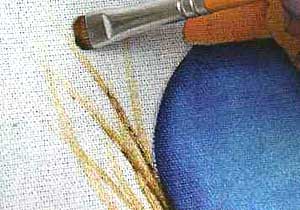27. Para fazer o chão, preencha toda a parte inferior com o pincel 815-20 e o ocre ouro e, por cima, uma camada de verde oliva.