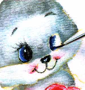 - Dentro dos olhos pinte meia bola na cor azulão (a outra metade será preto)