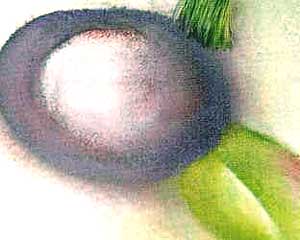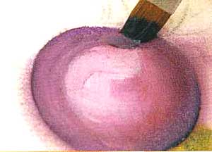 8. Com o pincel 321-10, misture branco e carmim nas cerdas e faça o volume da fruta no centro.