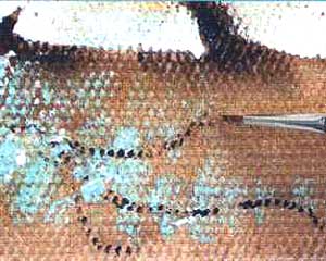 12. Para finalizar o trabalho, aplique o verde glacial e o branco no cabinho do botão.