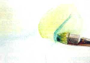 Sem pegar mais tinta, pincele em direção à borda das pétalas.