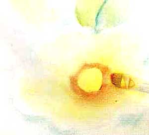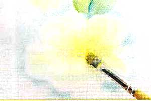 Molhe a ponta das cerdas na tinta amarelo e pinte o centro da flores com pinceladas aleatórias.
