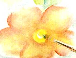 9. Com o pincel 4, reforce o amarelo do miolo.