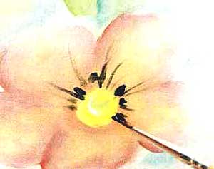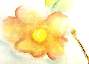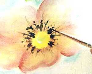 11. Lave o pincel 4 e pegue um pouco de tinta branca. Ilumine as áreas mais claras das bordas das pétalas, pincelando nos contornos.