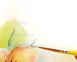 14. Com o pincel 0, pegue as tintas branco e verde, misture no pires e pinte os filetes do ramo de flores.