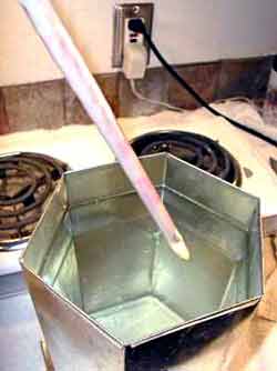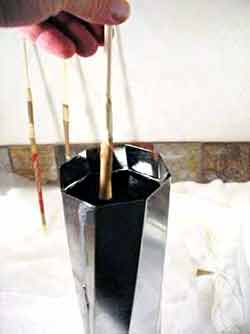 se não tiver uma forma alta, use uma lata ou qualquer recipiente que caiba a ponta da tocha mergulhada.