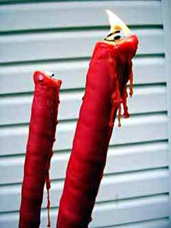 Atenção: A Vela Tocha tem a chama grande. Deve ser usada no quintal, chácara, sempre fora de casa. A chama tem resistência ao vento. Precauções: Quando usadas com segurança, as Tochas além de excelentes Repelentes, podem enfeitar e embelezar o exterior da sua residência com muito charme. |