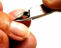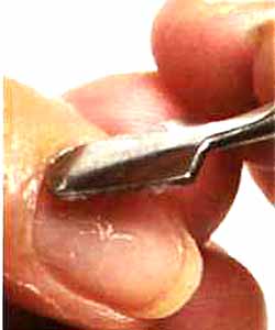7. Com um alicate de cutículas esterilizado, corte e retire a cutícula com cuidado.