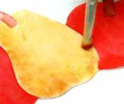 Curso de E.V.A: Pote de Frutas - passo 9 9. Pêra: Com o pincel largo e tinta marrom, sombreie o corpo da pêra.