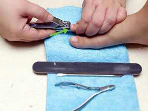 Corte até ver +- um milímetro da unha saindo do dedo.